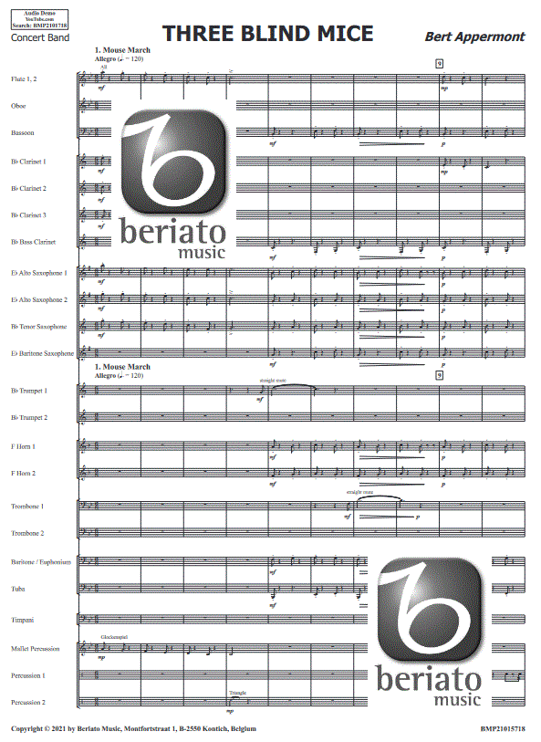 3 Blind Mice (Three) - cliquer ici 3 Blind Mice (Three) (orchestre d'harmonie), partition et pièces 129,99