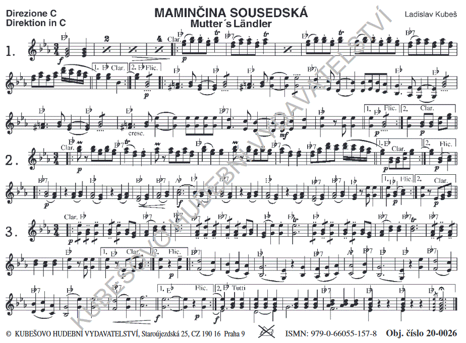 Flauto C, Clarinetto Es, Clarinetto 1.B, Clarinetto 2.B, Clarinetto 3.B, Altsaxophon 1.Es, Altsaxophon 2.Es, Tenorsaxophon 1.(3)B, Tenorsaxophon 2.(4)B, Baritonsaxophon Es,
