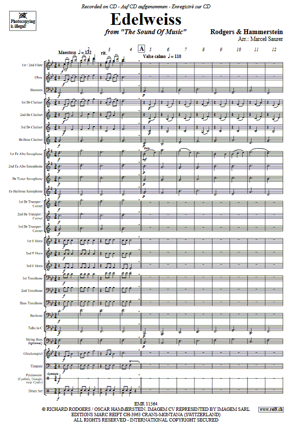 Edelweiss (from "The Sound of Music") - cliquer ici Edelweiss (from "The Sound of Music") (orchestre d'harmonie), partition et pièces 144,69