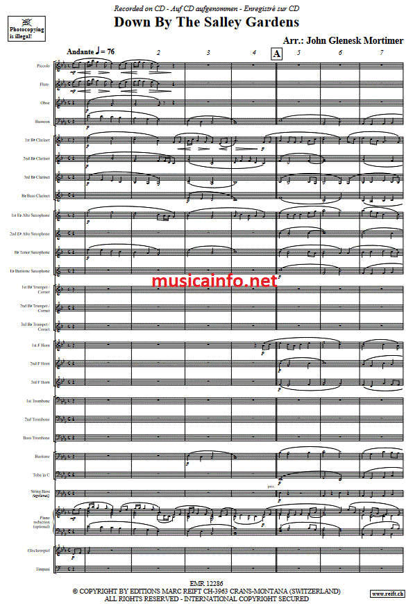 Down By The Salley Gardens - cliquer ici Down By The Salley Gardens (orchestre d'harmonie; /Fa), partition et pièces 110,68
