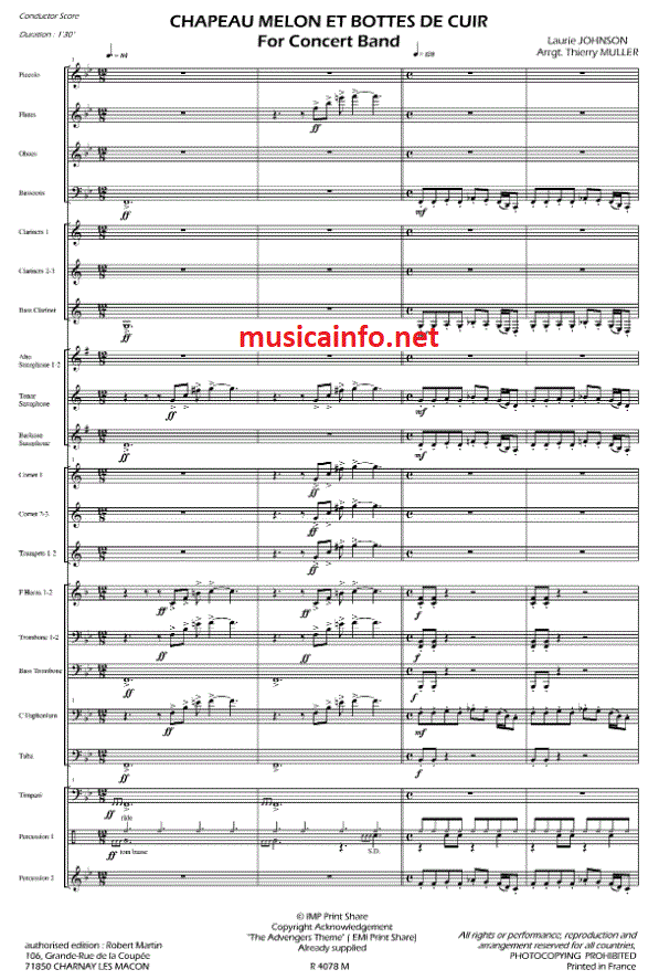 Mit Schirm, Charme und Melone (The Avengers) - cliquer ici Mit Schirm, Charme und Melone (The Avengers) (orchestre d'harmonie), partition