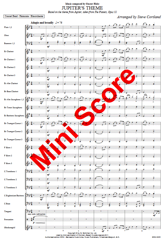 Jupiter's Theme - cliquer ici Jupiter's Theme (orchestre d'harmonie), partition et pièces