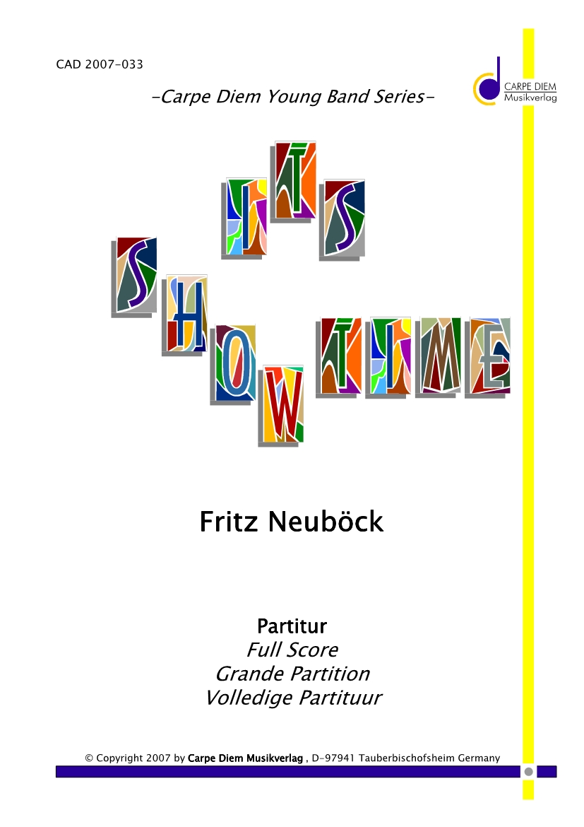 Informations complémentaires/contenu "It's Showtime" est une œuvre vivante pour orchestre de jeunes dans un style pop A-B-A. La première partie est portée par des cors et des trompettes, la partie lyrique du milieu est une mesure 6/8ème exigeante, et donc extrêmement précieuse d'un point de vue pédagogique. La troisième partie est une quasi reprise du début et conduit à une conclusion "croustillante". Un morceau de musique attrayant qui inspirera tous les orchestres de jeunes, et bien sûr tous les publics !