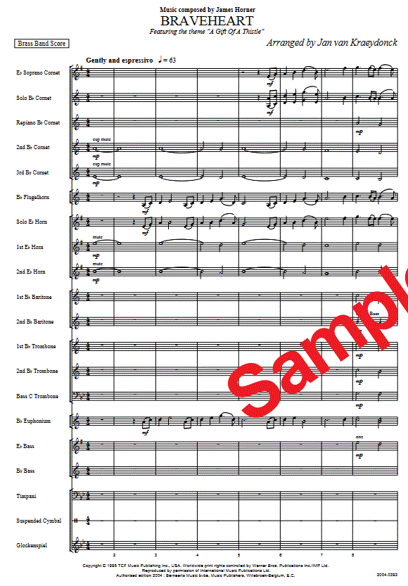 Braveheart - cliquer ici Braveheart (brass band), partition et pièces