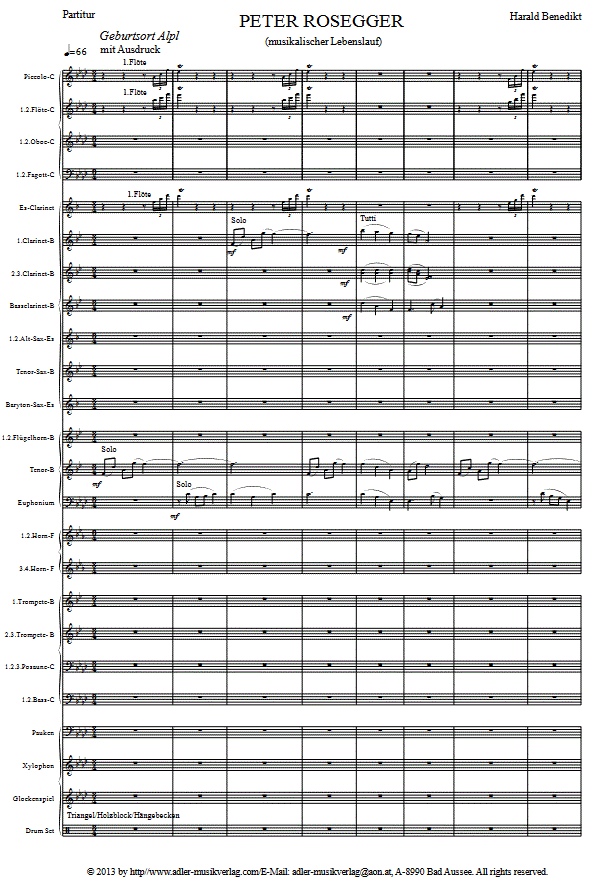 Peter Rosegger (Ein musikalischer Lebenslauf) - cliquer ici Peter Rosegger (Ein musikalischer Lebenslauf) (orchestre d'harmonie), partition et pièces