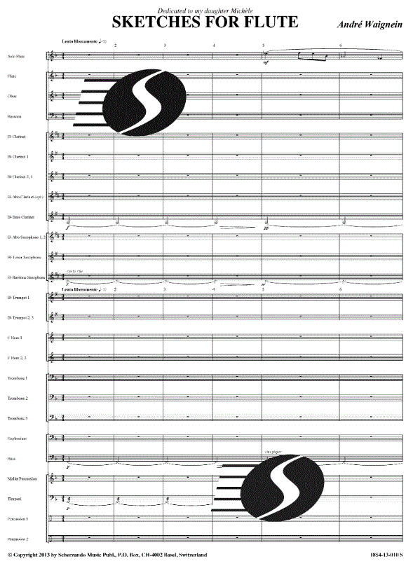 Informations complémentaires/contenu C’est à la demande de sa fille Michèle, à l’époque étudiante au Conservatoire de Musique de Tournai en Belgique qu’André Waignein écrivit Sketches for Flute, une oeuvre pour flûte traversière solo et orchestre (ou piano). Se présentant sous forme de scénettes, cette oeuvre met en évidence un certain nombre de facettes propres à la flûte traversière notamment : sonorité, technicité, tessiture, sensibilité et caractère. Composition très agréable à jouer, à accompagner et… à écouter.