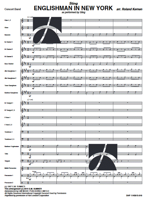 Englishman in New York - cliquer ici Englishman in New York (orchestre d'harmonie), partition