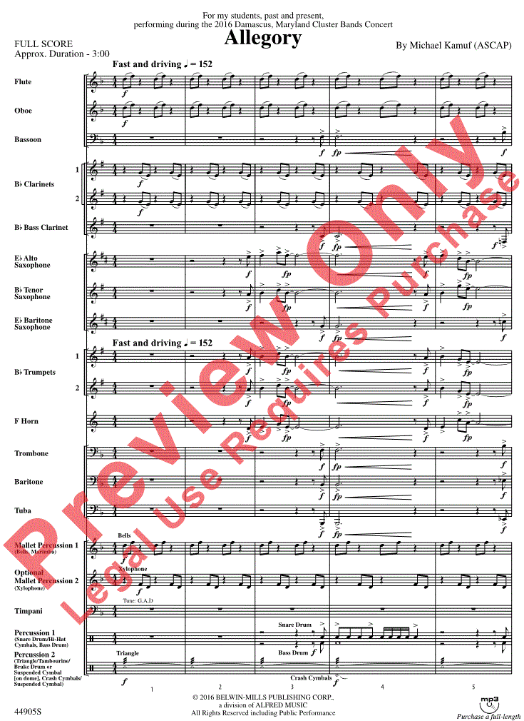 Allegory - cliquer ici Allegory (orchestre d'harmonie; orchestre des jeunes), partition et pièces
