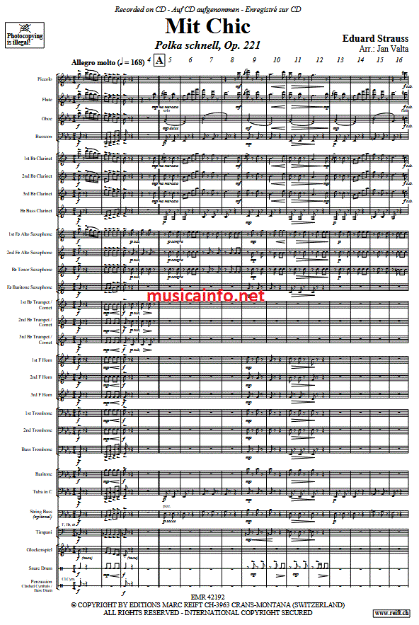 Mit Chic - cliquer ici Mit Chic (orchestre d'harmonie; ou; orchestre de fanfare), partition et pièces 96,59