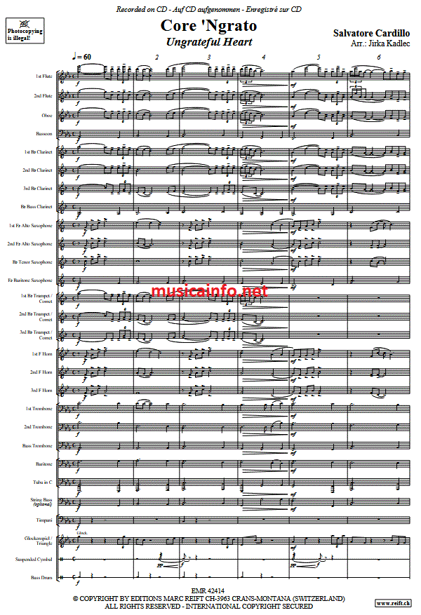 Core 'Ngrato (Ungrateful Heart) - cliquer ici Core 'Ngrato (Ungrateful Heart) (orchestre d'harmonie; ou; orchestre de fanfare), partition et pièces 107,95