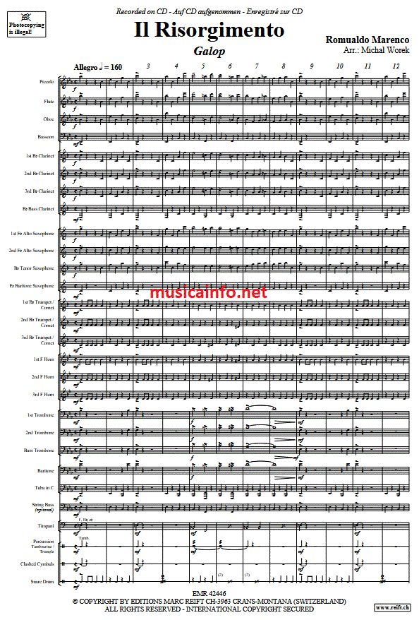 Il Risorgimento - cliquer ici Il Risorgimento (orchestre d'harmonie; ou; orchestre de fanfare), partition et pièces 130,68