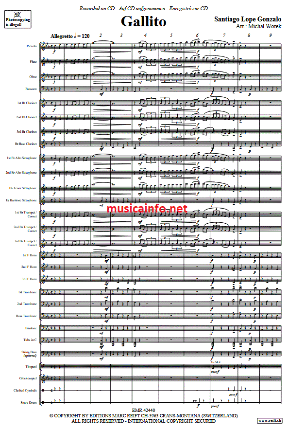 Gallito - cliquer ici Gallito (orchestre d'harmonie; ou; orchestre de fanfare), partition et pièces 107,95
