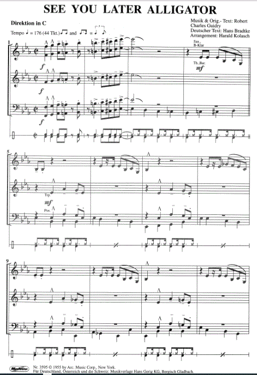 See You Later, Alligator - cliquer ici See You Later, Alligator (orchestre d'harmonie), Score condensé et parties 63,50