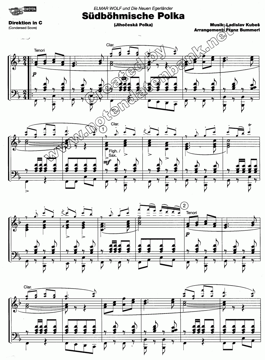 Südböhmische Polka (Jihoceská Polka) - cliquer ici Südböhmische Polka (Jihoceská Polka) (orchestre d'harmonie), Score condensé et parties